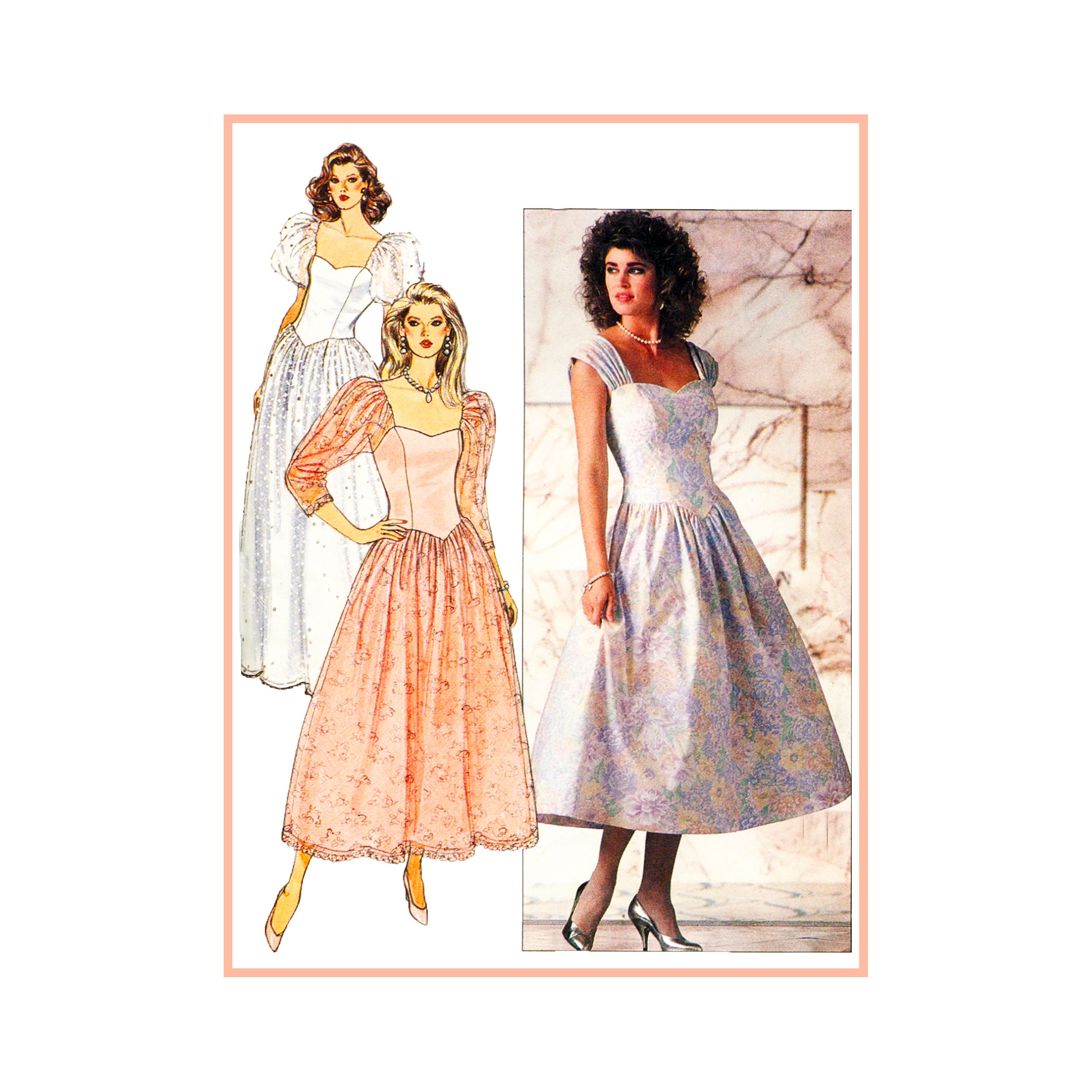 80s Puffy Sleeve Prom Dress Pattern Size 8 12 Bust Etsy Prom Dresses With Sleeves Prom Dress Pattern Formal Dress Patterns